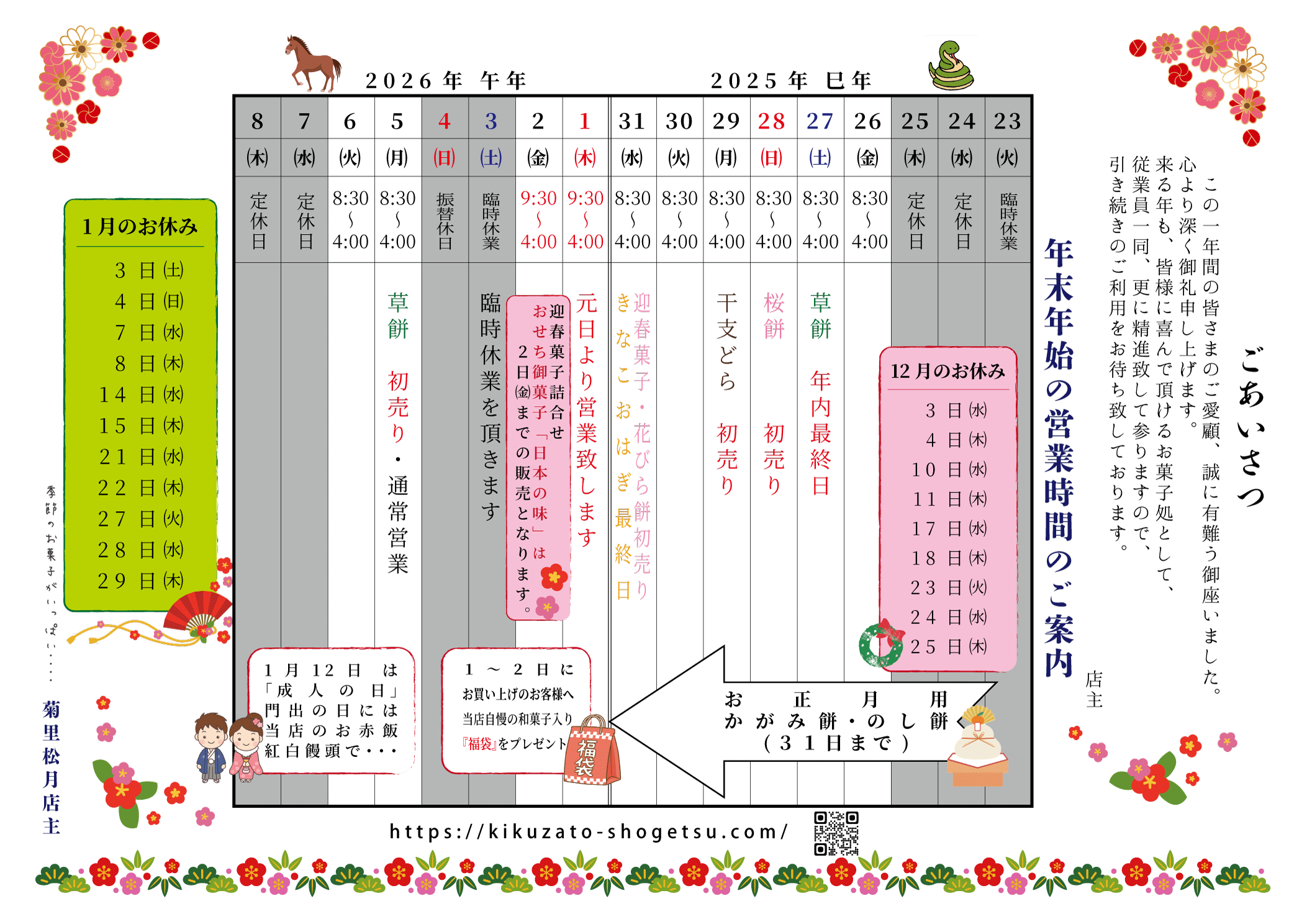*元旦 節分 ひな祭り お彼岸 端午の節句 お盆 敬老の日 師走